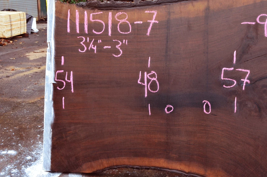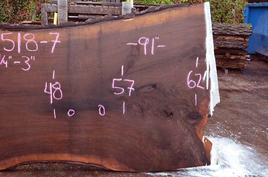 Crack center left, Mental center, Bark inclusion right, Small crack top right, Small rot spot right, Figure