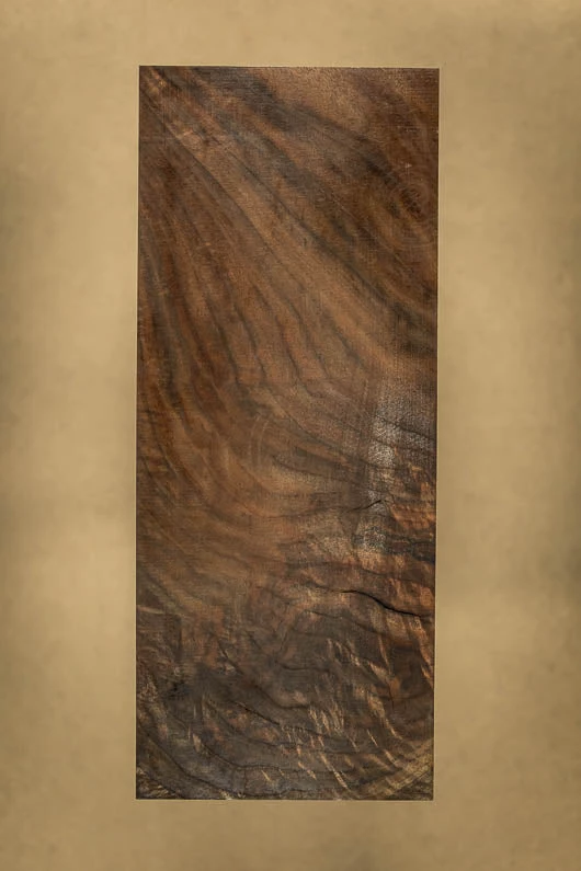 Partial feathercrotch, Curl, Knot through end, Cracks, Marbling, Color, 3A