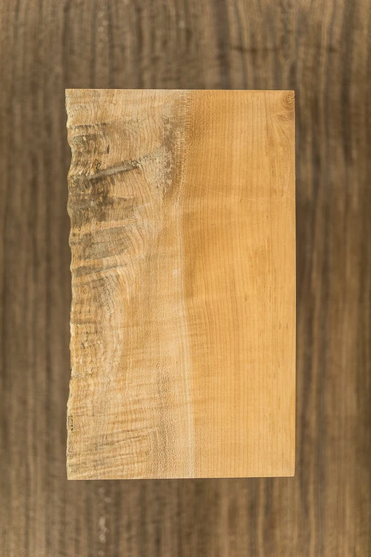 Moderate curl, Live edge, Stable knot, Color, Mineral lines, Small crack, 2A
