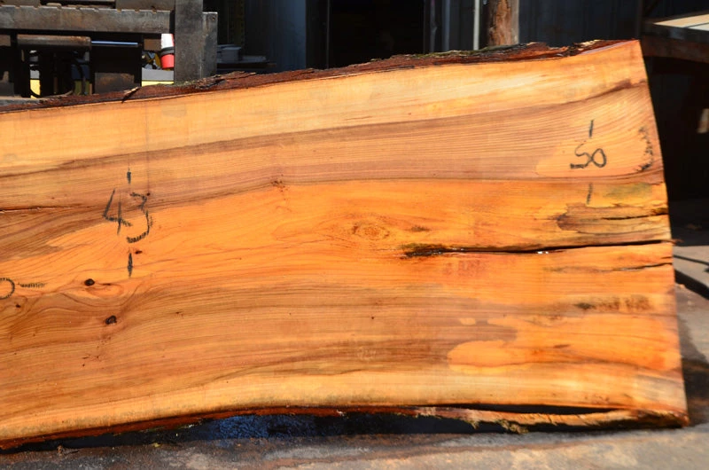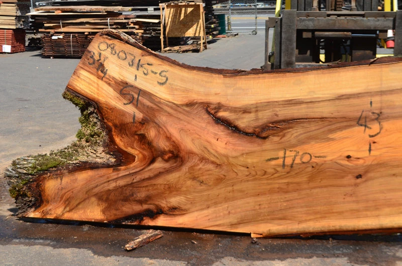 Bark inclusion in left and center, Large crack in far right, Knots and slight bark inclusion in left bottom