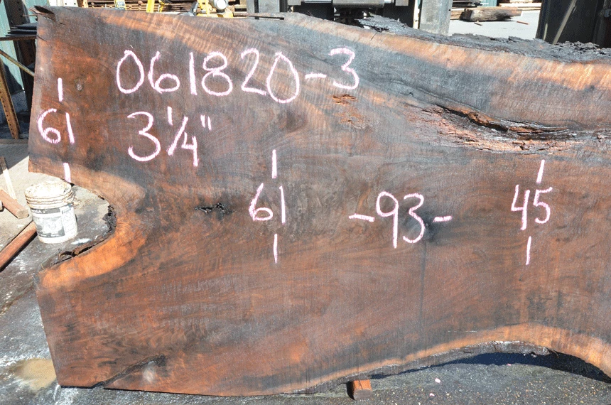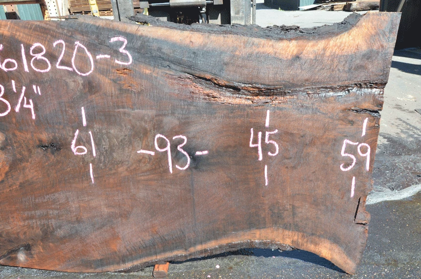 Bark inclusions, Small cracks on end, Soft knot top left, Metal wire center, Rot top right, Light figure
