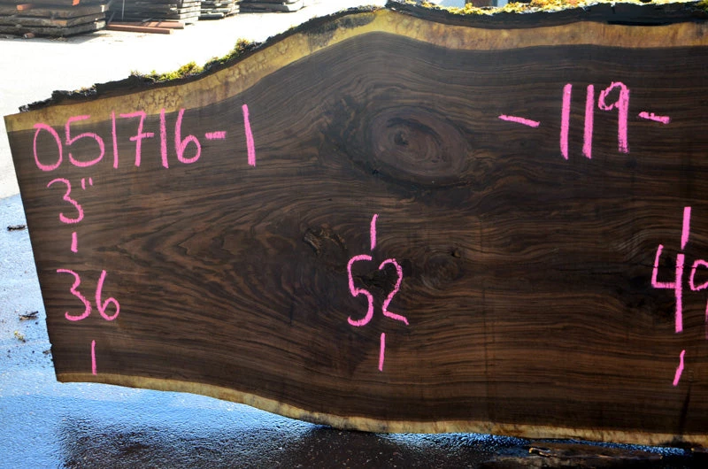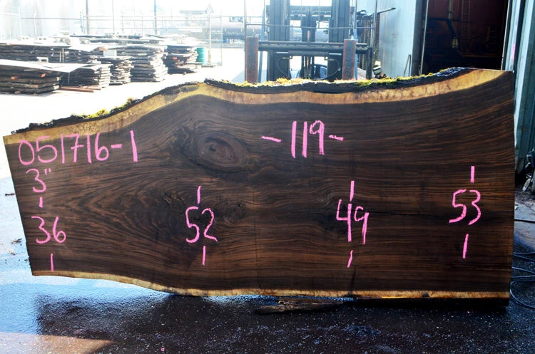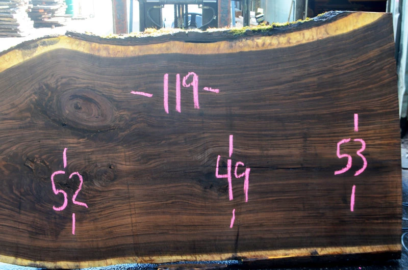 Light figure, Crack center to right, Large sound knot top, knots center, Bark inclusion