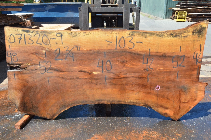 Rot spot left end, Small cracks through center, Small sound knots, Piece of wire visible