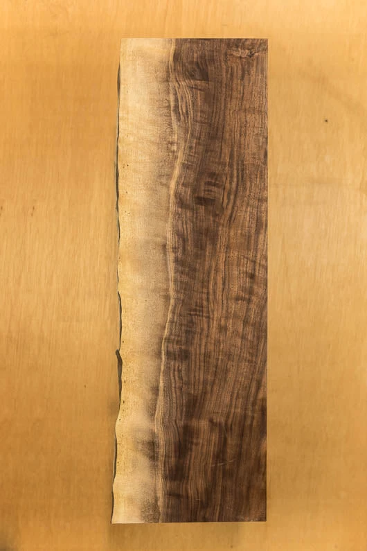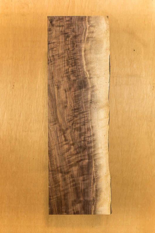 Curly, Live edge, Sap w/ bug tracks and holes, Small burl, 3A