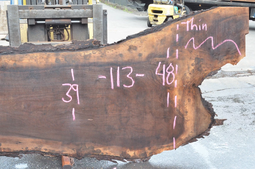 Rot spot top left, Nail visible top left, Miscuts backside, Thins out on right