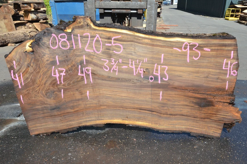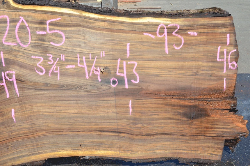 Bark inclusions, Few sound knots, Cracks right, Nail right of center, Rot spot right, Some blade wandering, Nails backside