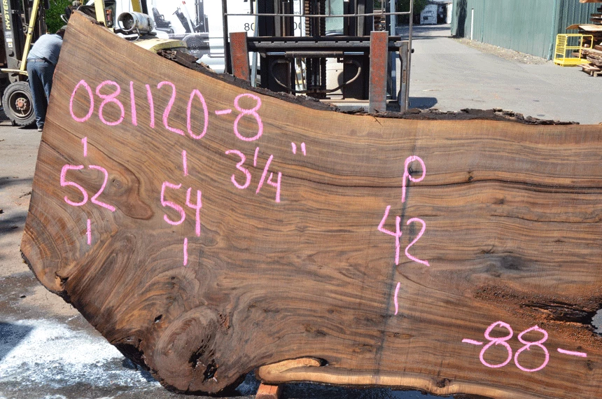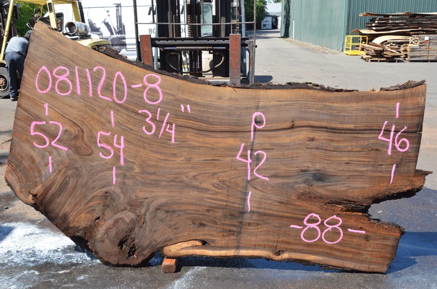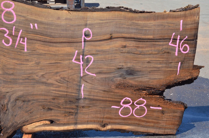 Small bark inclusions, Small sound knots, Small crack far left end, Crack across top, Partially rotten know, Rot spot right, Nail top