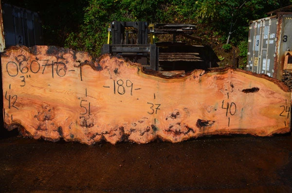 Cracks in left, Soft knot in right, Knots through center, Bark incluision, Figure throughout, Burls