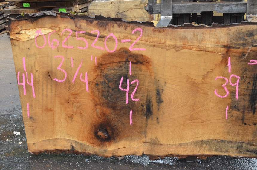 Partially cracked knot left, Soft knot bottom left, Small cracks on ends and center, Small bark inclusion, Rot spot top left cover, Small sound knots, Rot spot on backside