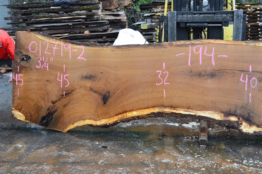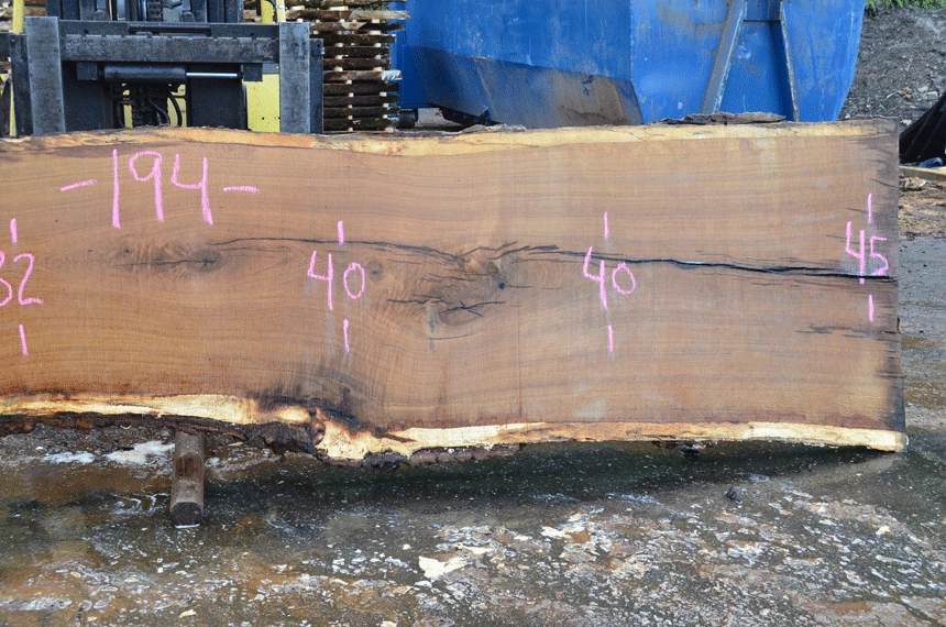 Rot spots left, Cracks, Small bark inclusions, Sound cracked knots, Larger crack right, Light figure
