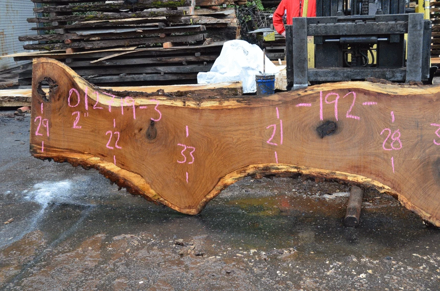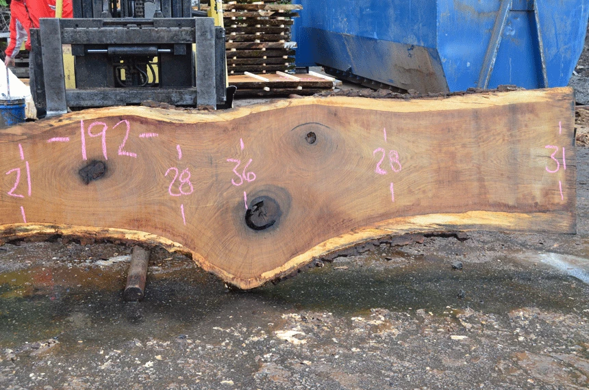 Jacket cut, Soft knots, Small cracks on ends, Small bark inclusions, Light figure