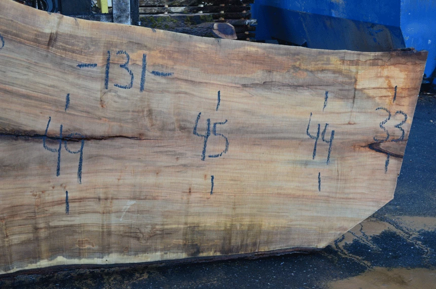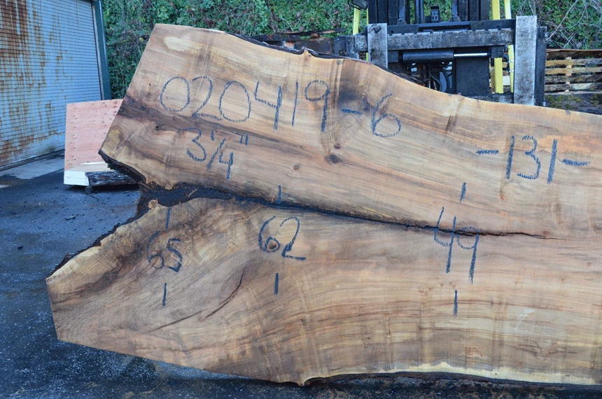 Small rot spot top left, Sound knots, Small bark inclusion, Crack form left to center, Slight discoloration, Spalting top right, Small cracked piece far right, Figure