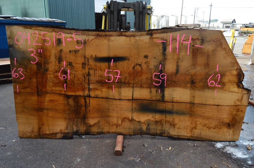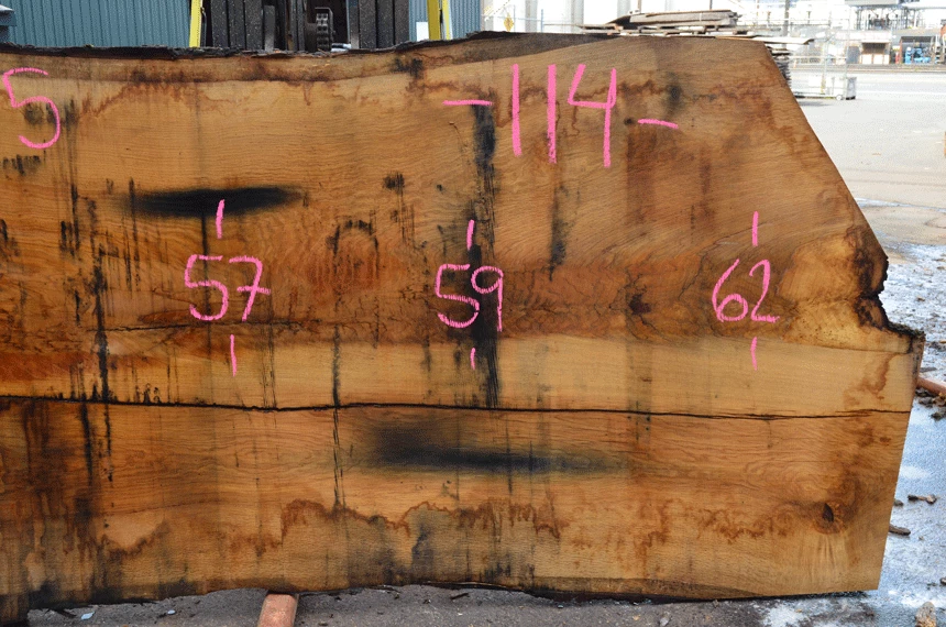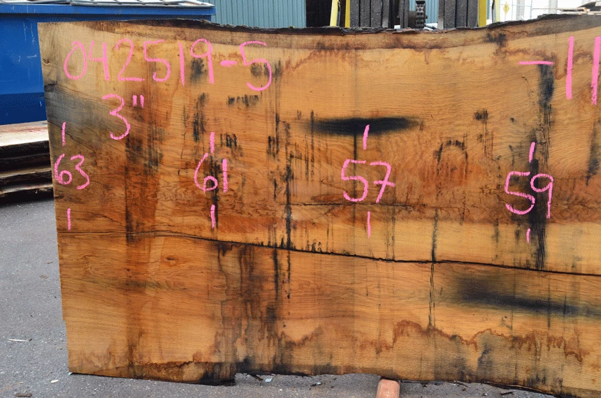 Small bark inclusion top left, Surface cracks, Crack along center, Small bark inclusions center, Nail top, Cupping