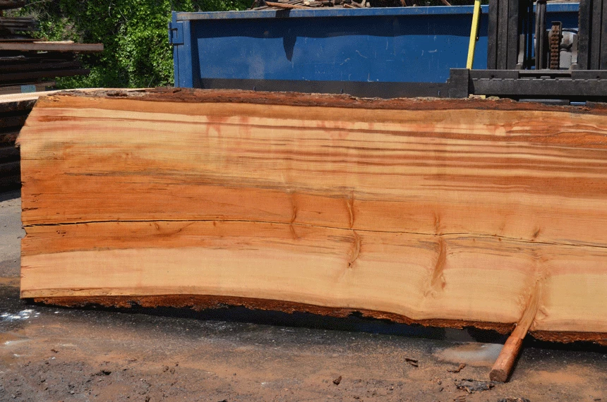 Cracks through center pith, Sound knots, Soft knots top right, Rot spots left, Rot top right, Slight blade wandering