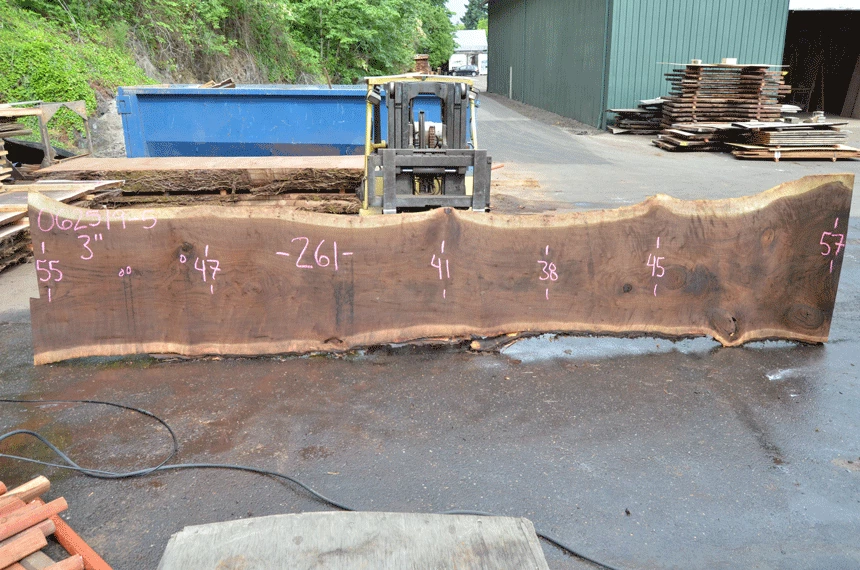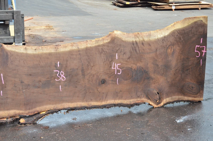 Tiny sound knots, Larger sound knots right, Three partially soft knots, Small bark inclusions, Three nails left, Figure, Slight blade wandering