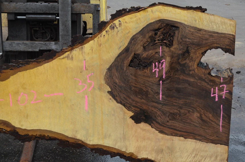 Sap in center, Marbling, Hole in right, Bark inclusions right