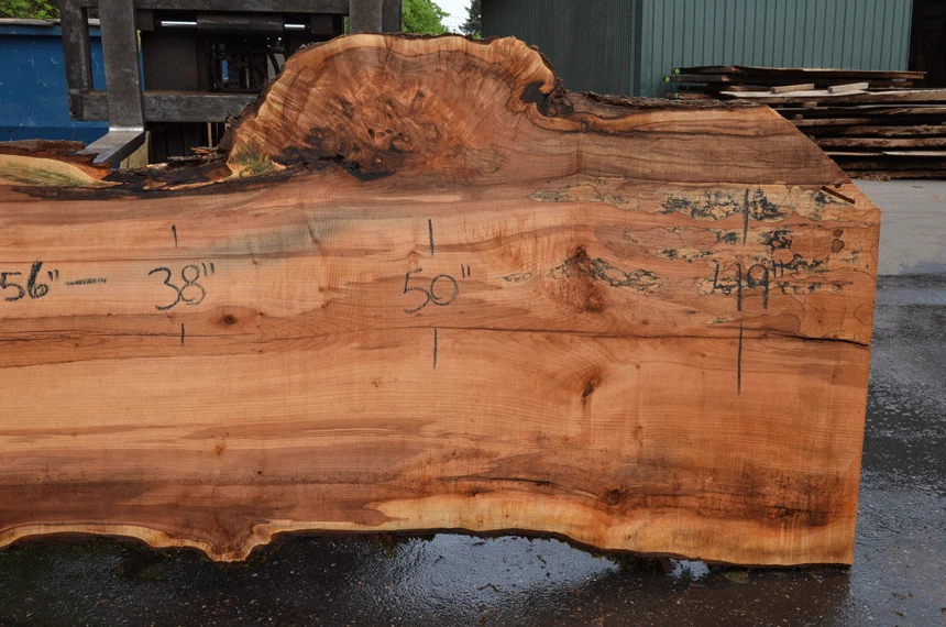 Blade wandering, Crack through center, Spalting right end, Bark inclusions, Cracks along bottom