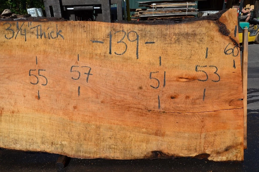 Cracks through center – stabilized, Small sound knots, Small bark inclusions, Light figure