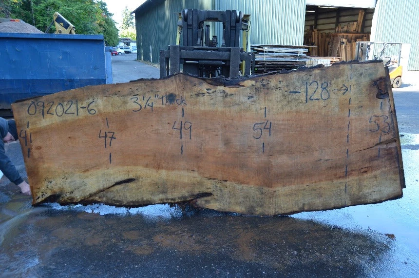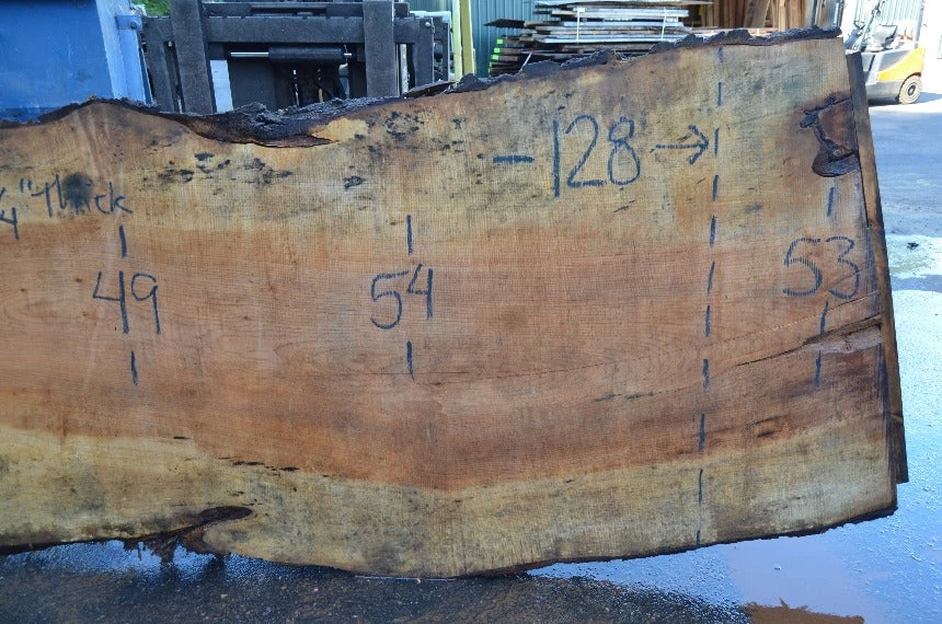 Beyond 128″ mark 2″, Small sound knots, Small bark inclusions, Cracks along center right