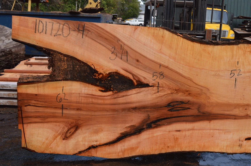 Large bark inclusion at crotch, Smaller bark inclusions through out, Knots, Light figure