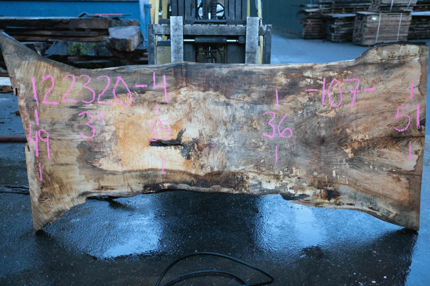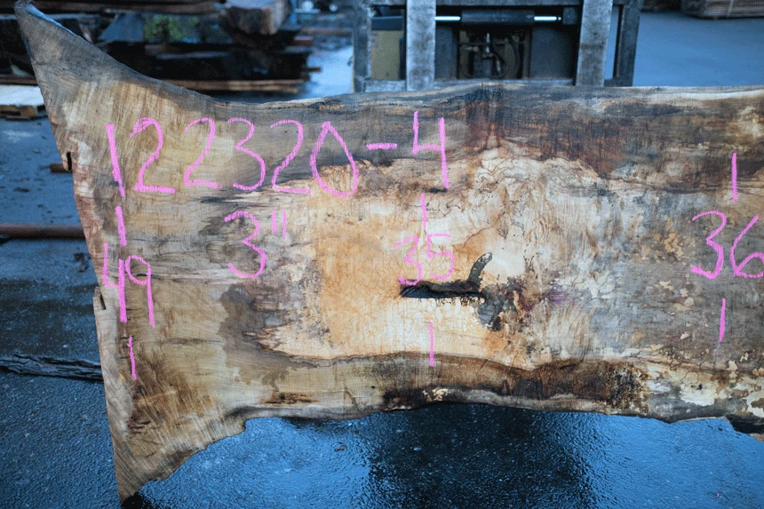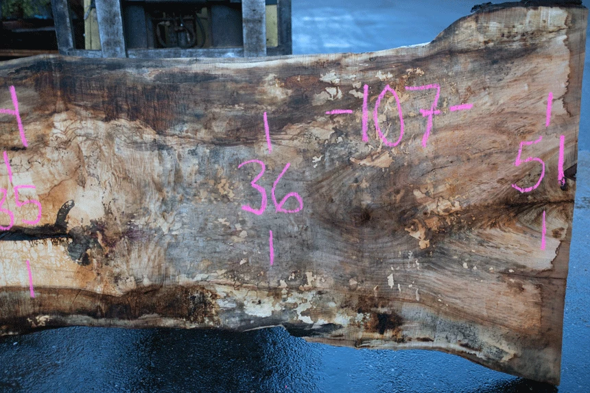 Small bark inclusions center, Rotten hole center, Cracks right, Light surface rot – spalting
