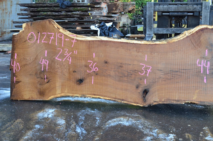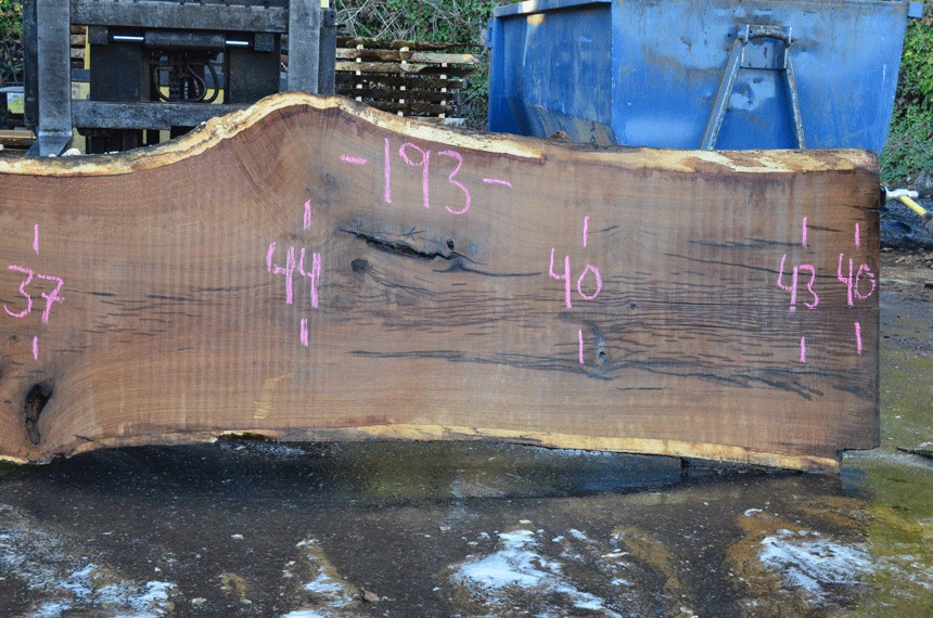 Several soft knots, Small bark inclusions, Cracks, Slight discoloration right, Slight miscut on backside, Light figure