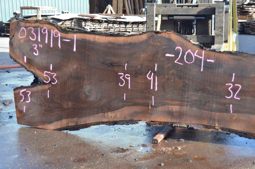 Sound knots, Bark inclusions, Large bark inclusions backside, Soft knot right of center, Jacket cut