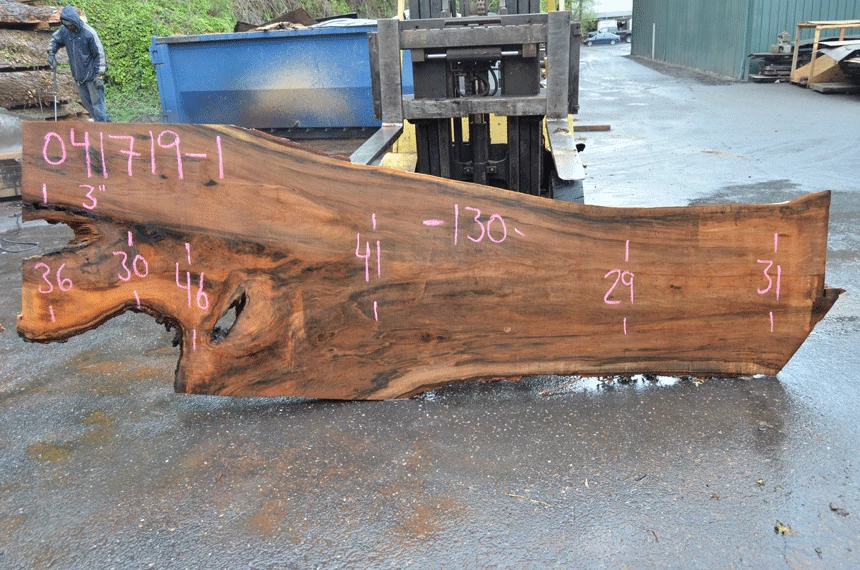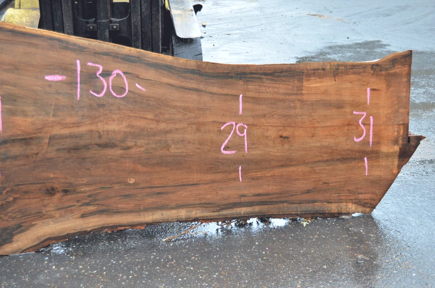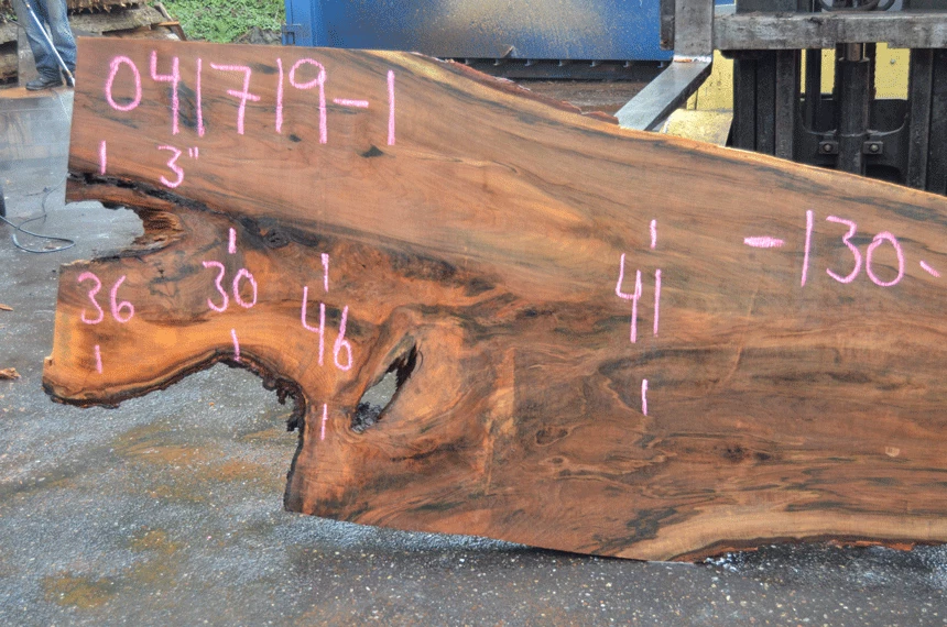 Rot holes, Small cracks left, Bark inclusions left, Two small sound knots center left, Jacket cut