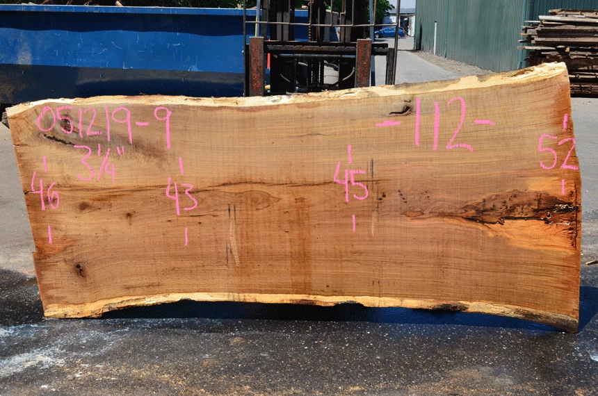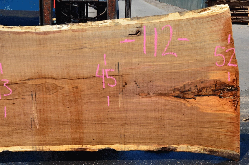 Small cracks, Rot on sapwood edges, Small bark inclusions, Two partially soft knots left, Hole top right of center, Rot spot right end, Sound knots