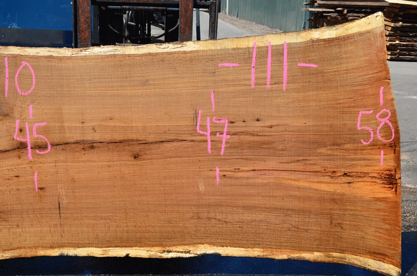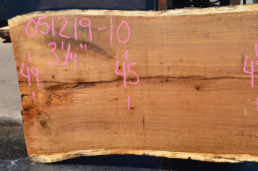 Small cracks, Rot on sapwood edges, Small bark inclusions, Two partially soft knots left, Hole top right of center, Rot spot right end, Sound knots