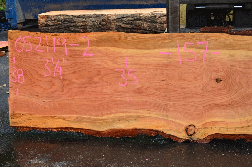 Very small cracks on left ned, Sound knots, Small bark inclusions, Small knot hole on top right, Jacket cut