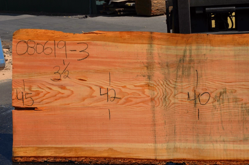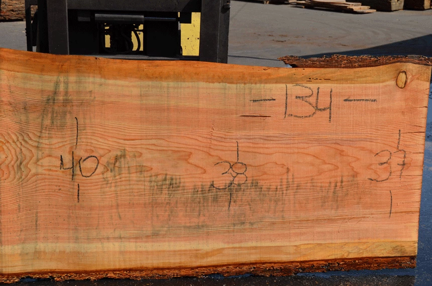 Blade wandering, Figure, Bark inclusions, Sound knot, Piece missing left