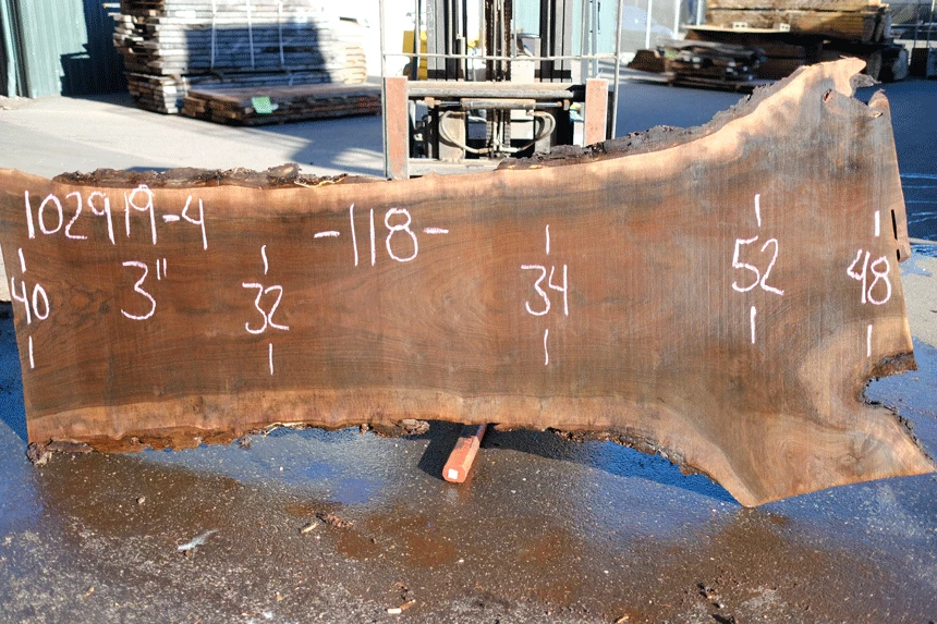 Small sound knots, Small bark inclusion and partially rotten knot top right corner, Light figure