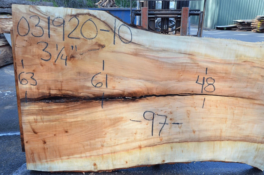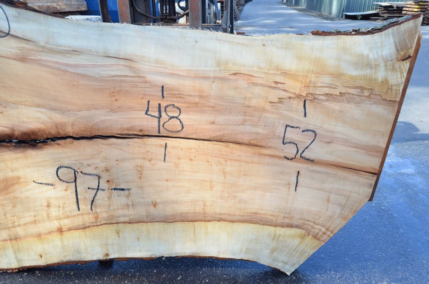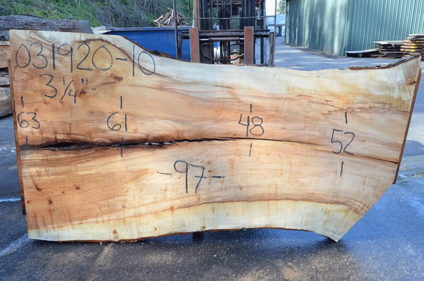 Kiln Dried, Rot top left, Bark inclusions, Crack through center (stabilized), Light figure