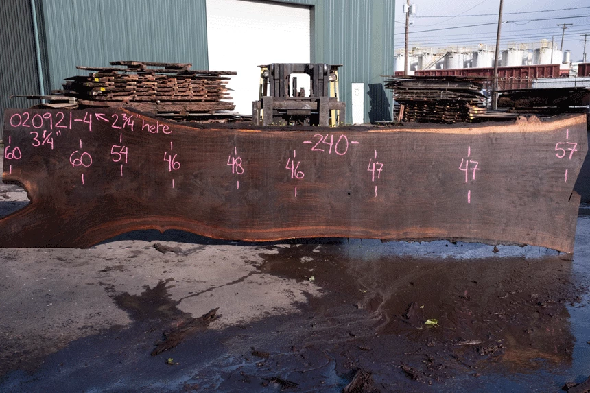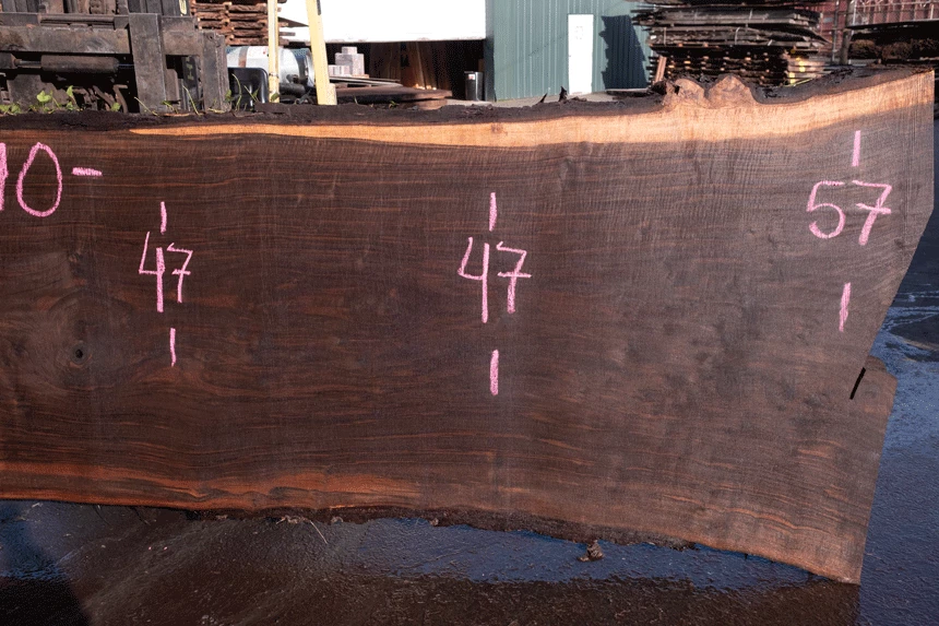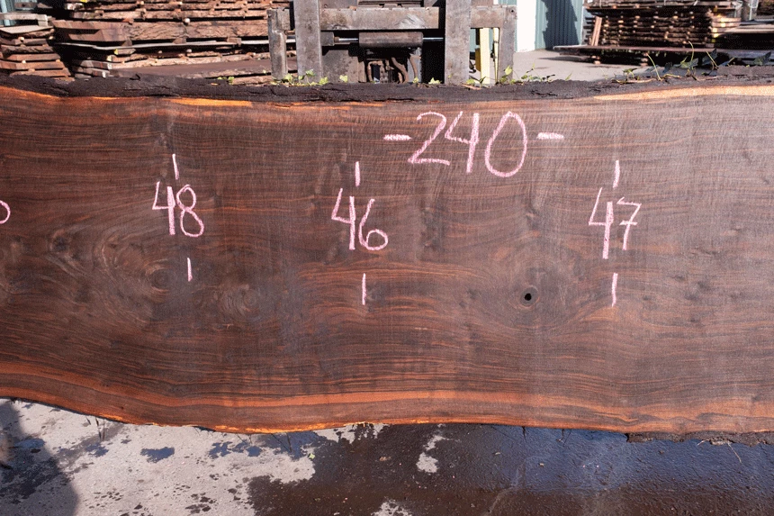 Sound knots through center, Bark inclusion center, Light rot top edge, Slight blade wandering