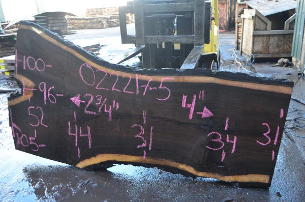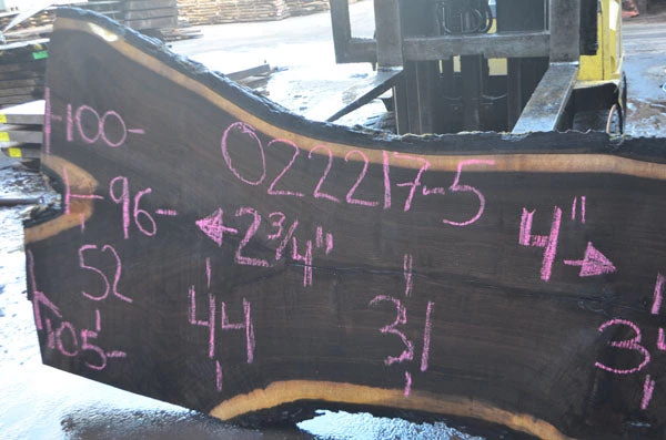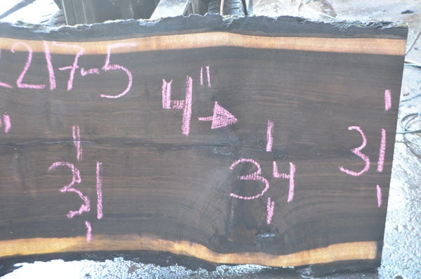 Kiln Dried, Pith on right edge, Feather crotch left, Cracks throughout, Knot top left