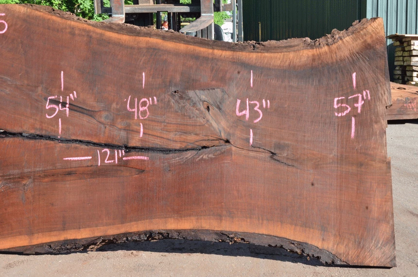 Cracked bark inclusion through center, Cracks through center, Small bark inclusions, Light figure