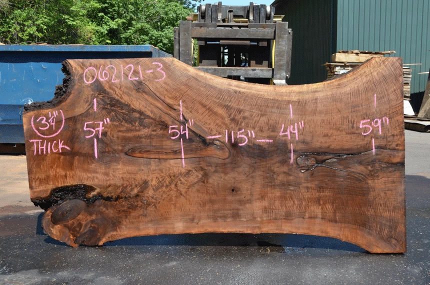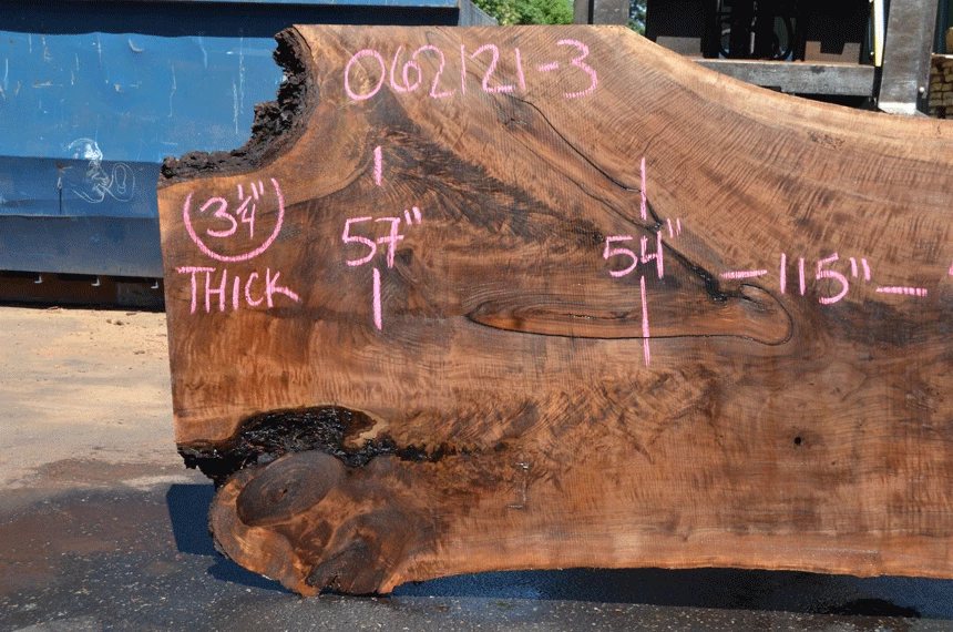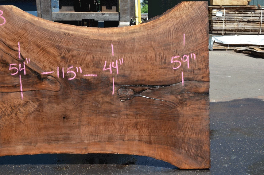 Cracked bark inclusion right end, Bark inclusion bottom left, Bark inclusion along crotch, Extremely figured