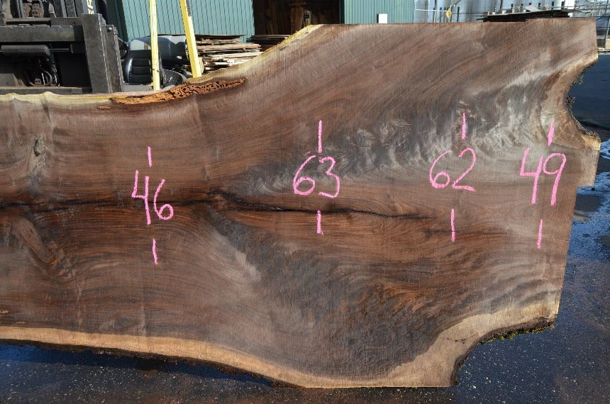 Figured, Crack through center, Cracked knot top left, Rot spot top right, Blade wandering