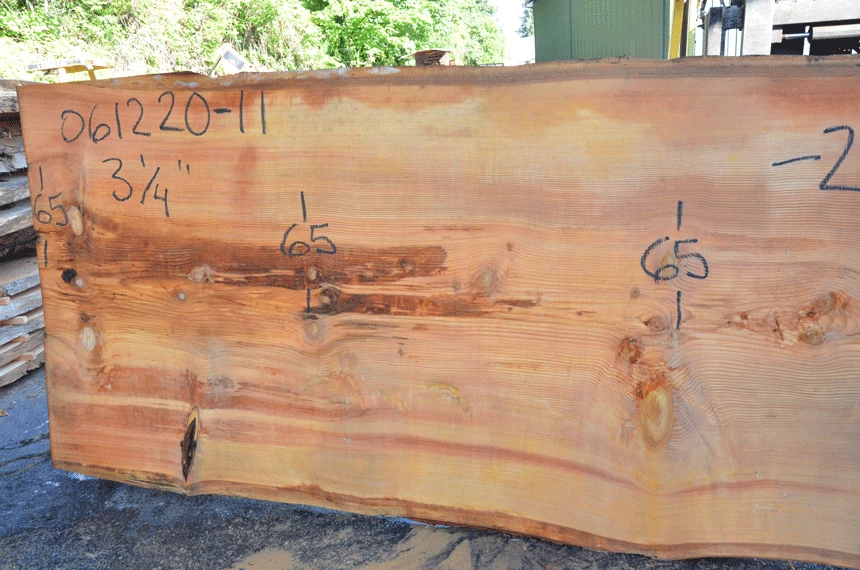 Sound knots, Cracks along center, Stable rot spots, Small bark inclusions