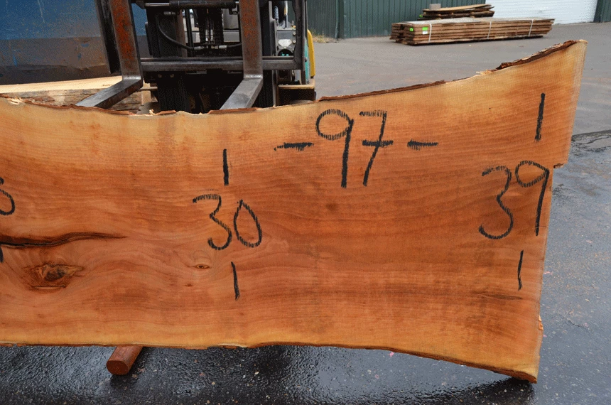 Very small knots, Bark inclusion hole bottom left, Bark inclusion cracks center and left, Soft knot center, Very small bark inclusions