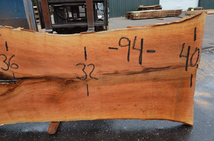 Small sound knots, Small cracks along center, Small bark inclusions, Large bar inclusion cracked hole left of center
