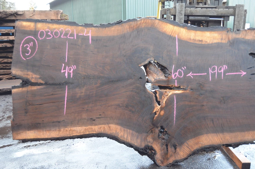 Hole in center, Bark inclusion top center, Bark inclusions under hole, Figure