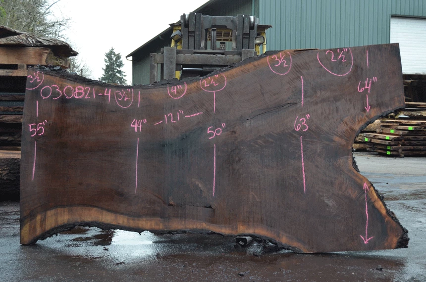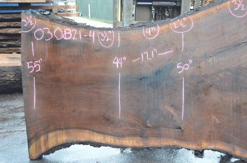Crack top right, Bark inclusion center bottom, Metal stain, Figured, Blade wandering