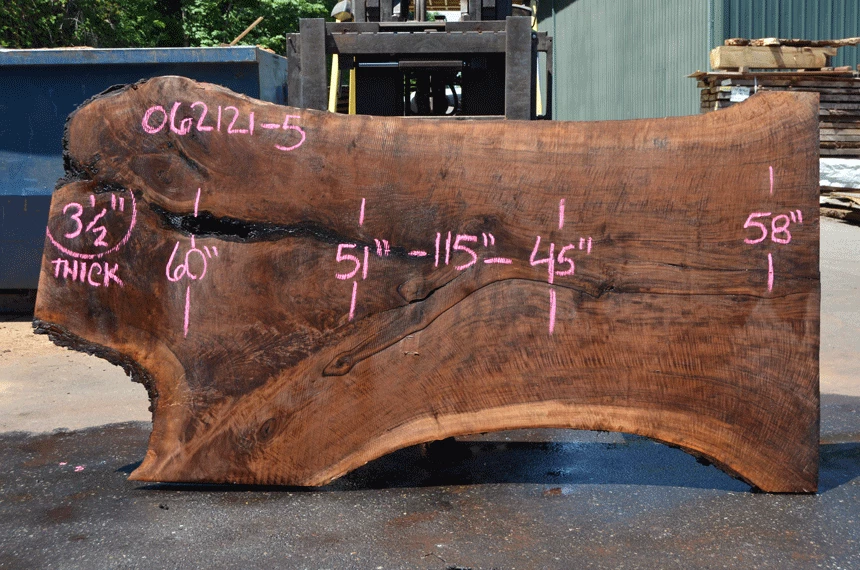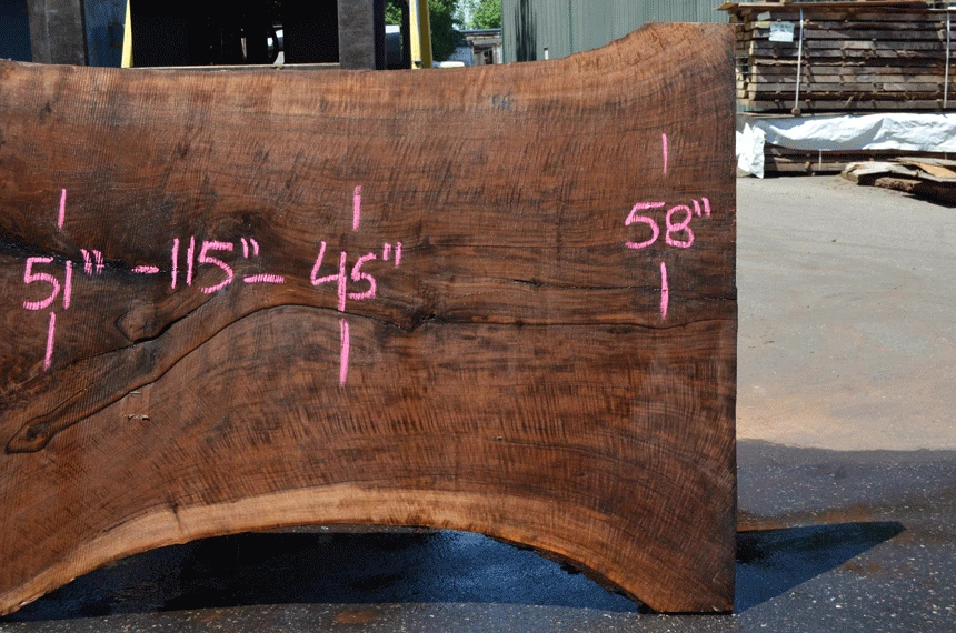 Large bark inclusion left center, Cracked through center, Extremely figured