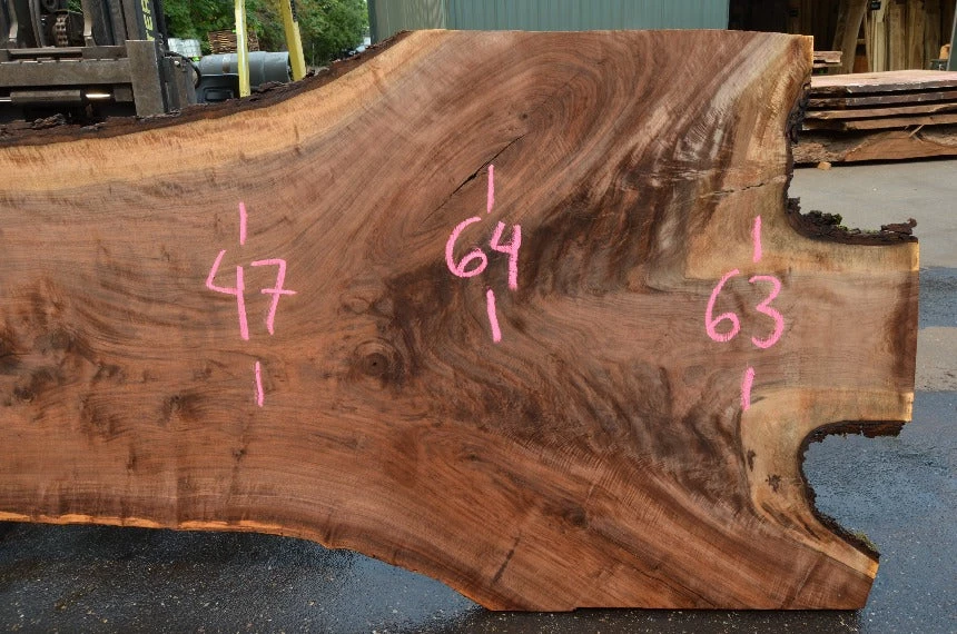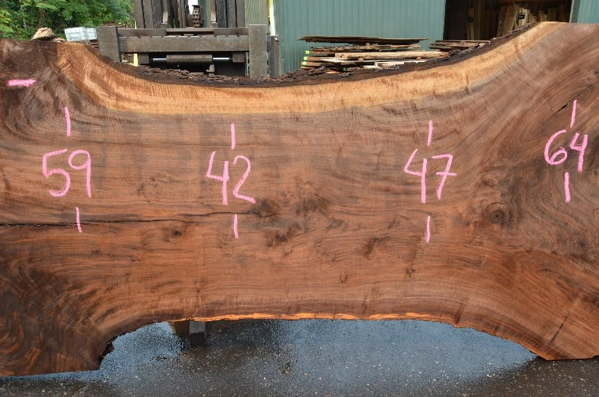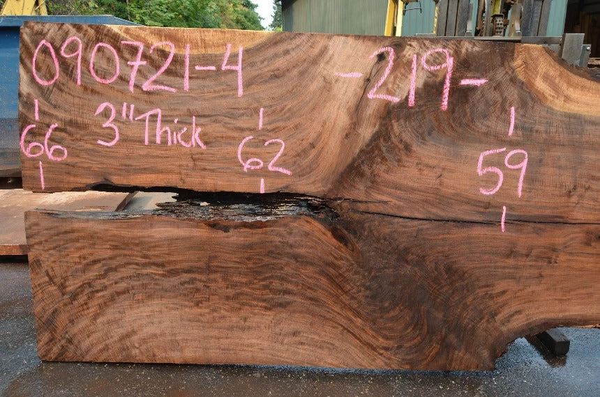 Large rotted bark inclusion left. Crack through center, Cracked knots, Rot along bottom edge, Figure