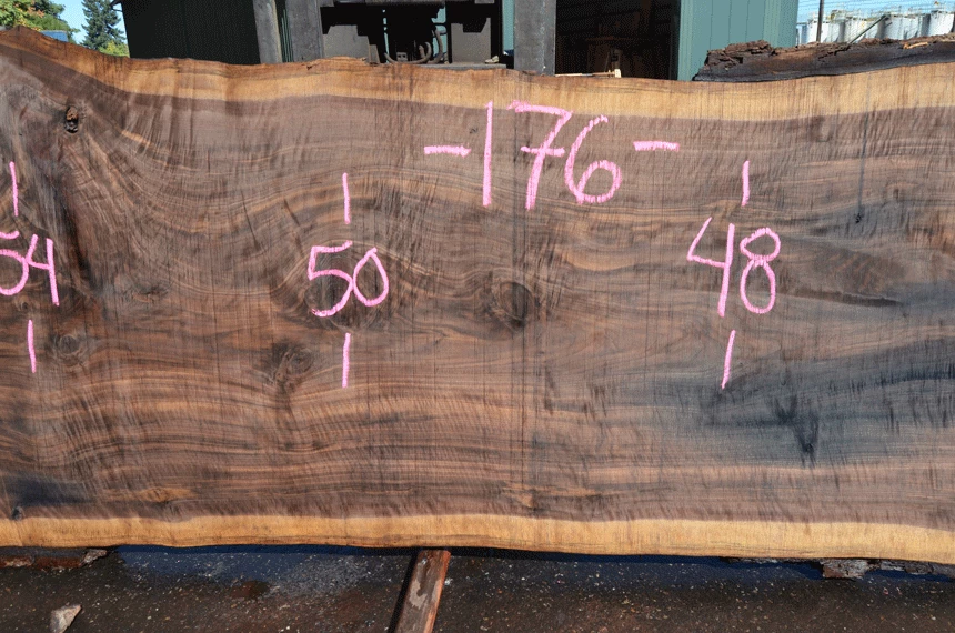 Small bark inclusions, Nail holes, Metal staining, Soft knot left, Bullets bottom right, Slight blade wandering, Figure