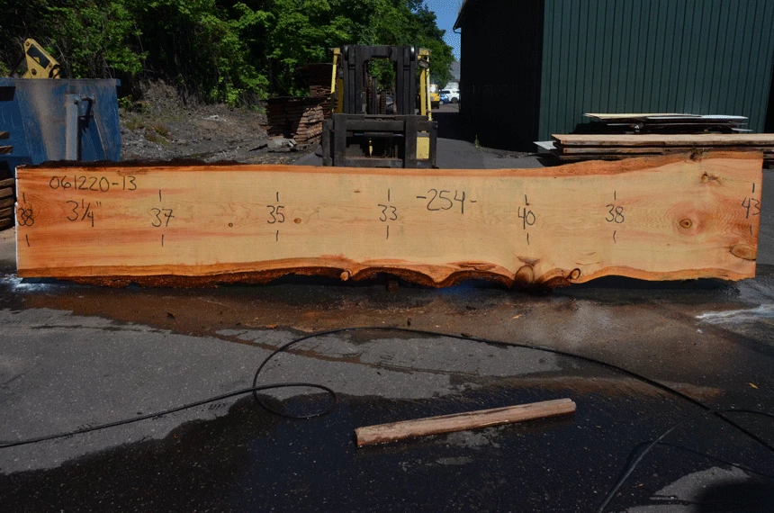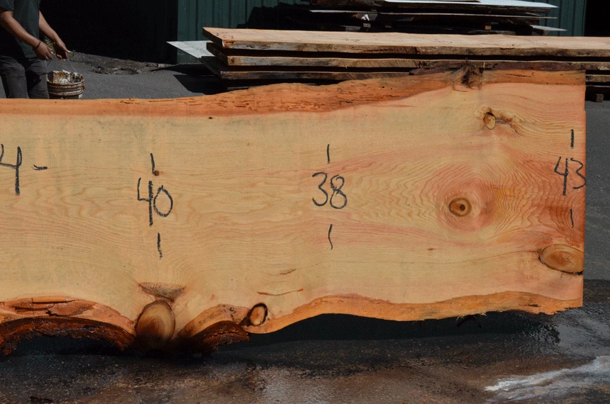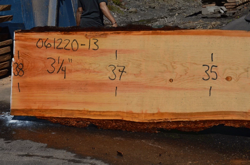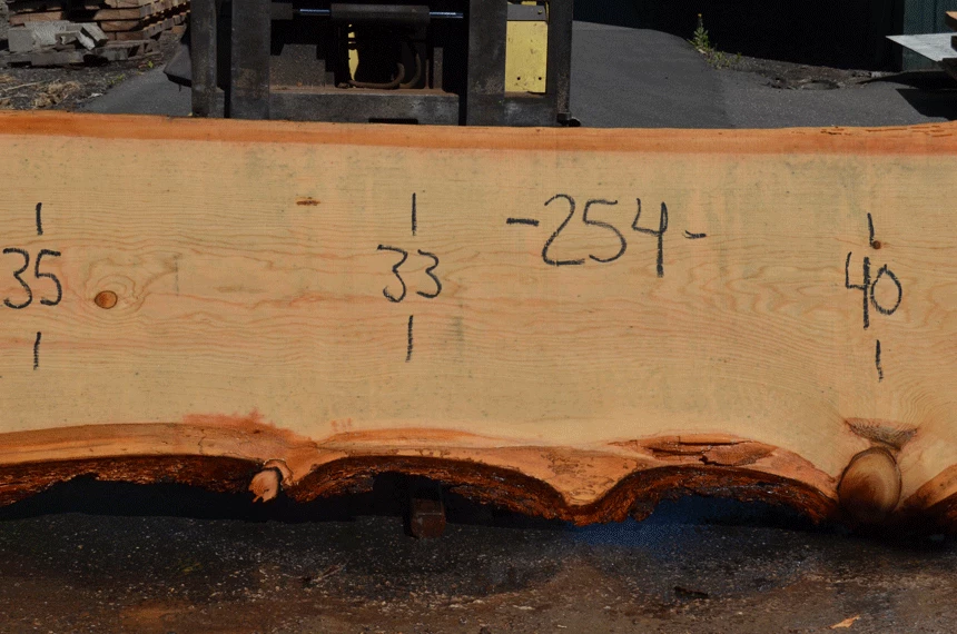 Sound knots, Small cracks left end, Small rot spots top left and top right, Small bark inclusion right, Jacket cut