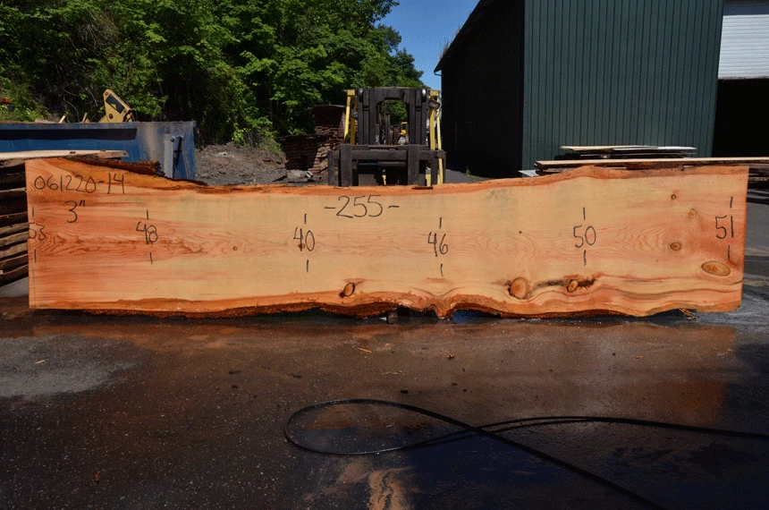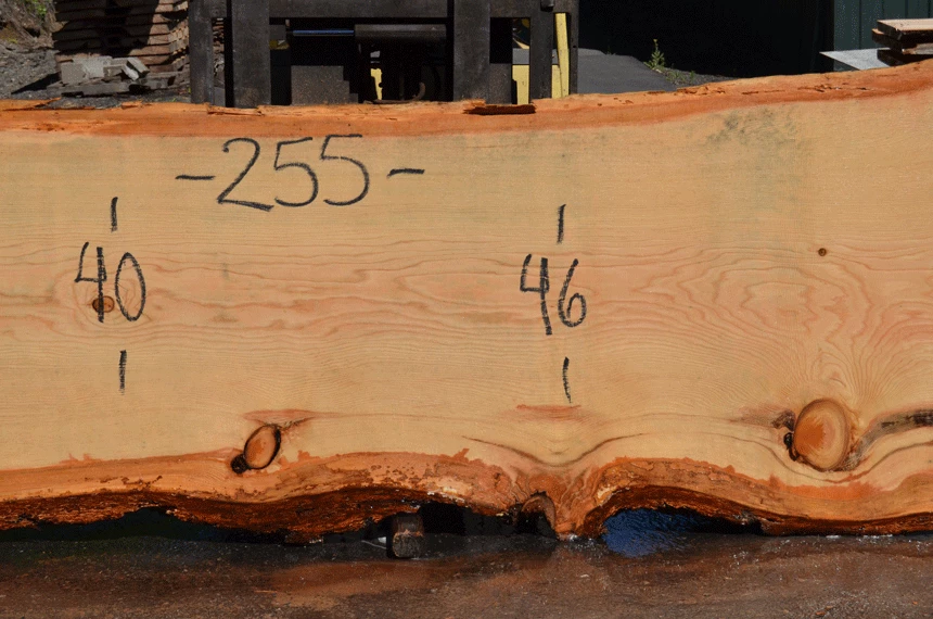 Sound knots, Small cracks on left end, Rot spot top left, Small bark inclusions