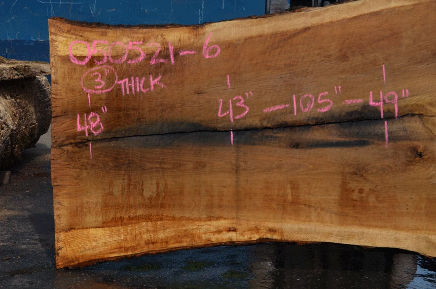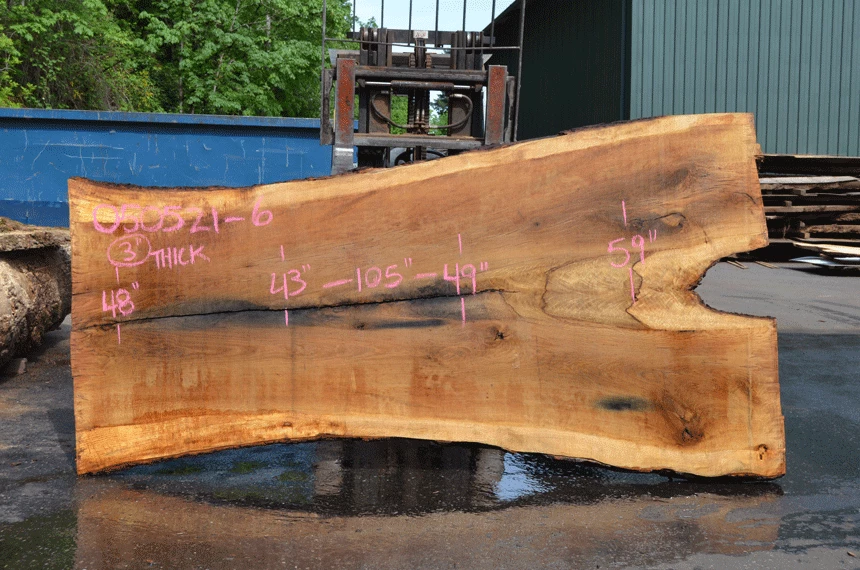 Crack through center, metal staining, Bark inclusions, Wind checks